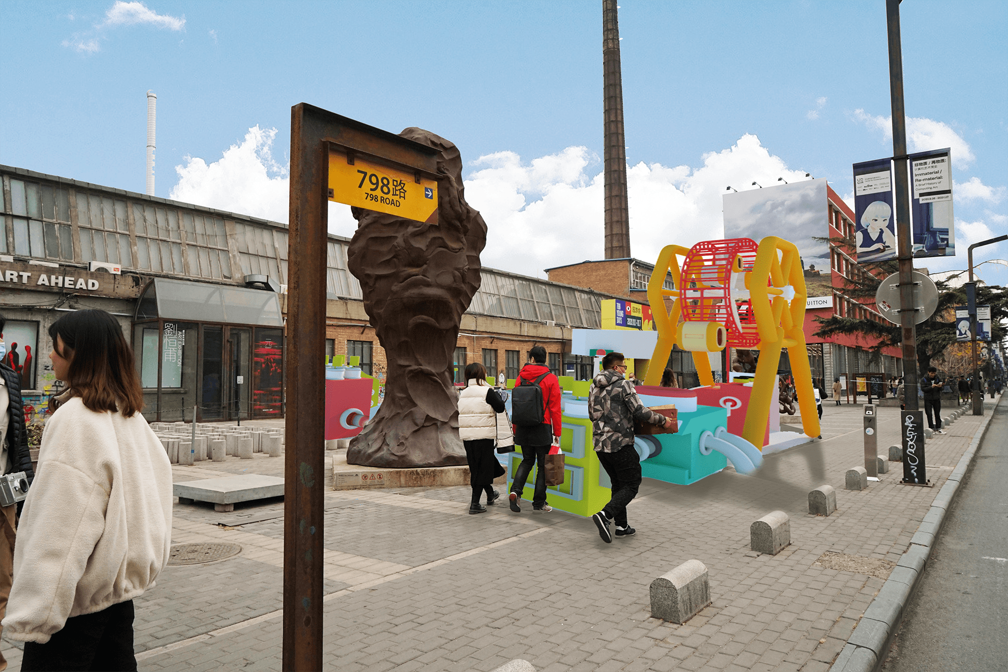 Beijing 798 Art Zone has become the new regional mark of Beijing. Galleries, design studios, art exhibits, artists' studios, fashionable shops, restaurants, and bars assemble here. However, due to the scattered neighborhoods, new visitors were in urgent need of a specific tour guidance. We hope to use the existing square space and structure of Beijing 798 to provide visitors with guidance and personalized interaction, which improve their art browsing experience. EMO factory is a customized AR content sending experience, which users can wind down through creating AR model they like.