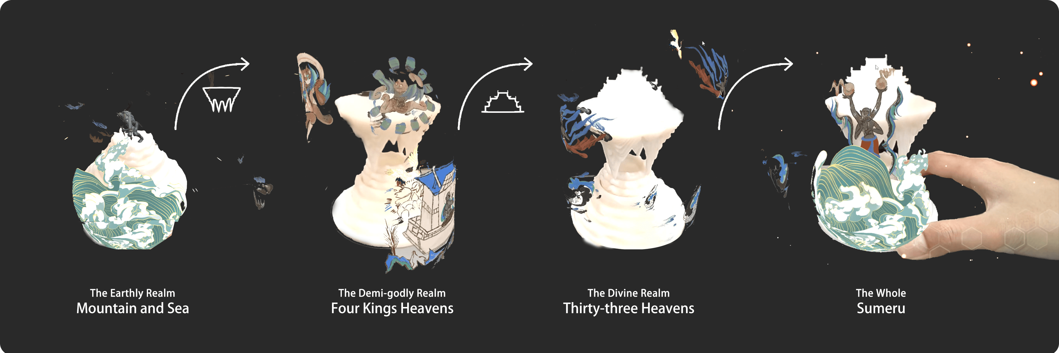 "SUMU Sight" utilizes tangible narratives to embody the inherently ethereal Buddhist stories in a physical form, virtually, reinforcing the narrative behind the murals and the interplay between reality and illusion, and the Zen intention of unity between heaven and humanity.