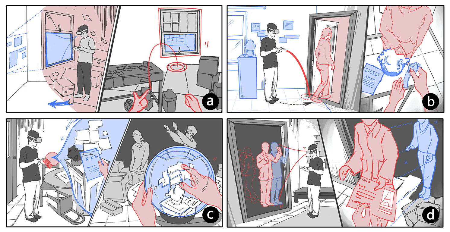 Based on current studies, we refined four cross-reality interaction methods to bridge the gap between the virtual and reality: Portal Passthrough, Bystander Avatar, Object Passthrough, and Virtual Guidance.